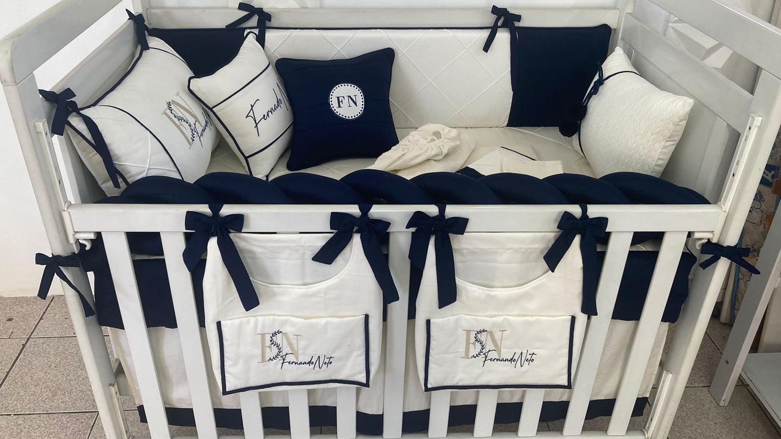 Kit Berço feito com tecido percal 400 fios 100% aglodão, Sarja Leve antialérgico com longa duração de uso. Os enchimentos são feitos com manta siliconada para os protetores, ou espuma com densidade 23, proporcionando conforto e segurança ao bebê dentro do berço!
