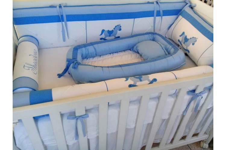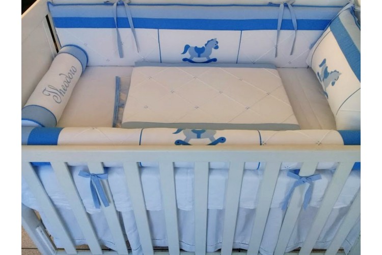 Kit Berço feito com tecidos Percal 400 fios, Sarja Leve, Tricoline tudo de algodão, antialérgico com longa duração de uso. Os recheios são feitos com fibra siliconada ou espuma com densidade 23, proporcionando conforto e segurança ao bebê dentro do berço!
