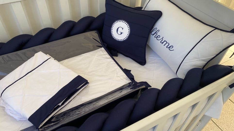 Kit Berço feito com tecido percal 400 fios 100% aglodão, Sarja Leve antialérgico com longa duração de uso. Os enchimentos são feitos com manta siliconada para os protetores, ou espuma com densidade 23, proporcionando conforto e segurança ao bebê dentro do berço!
