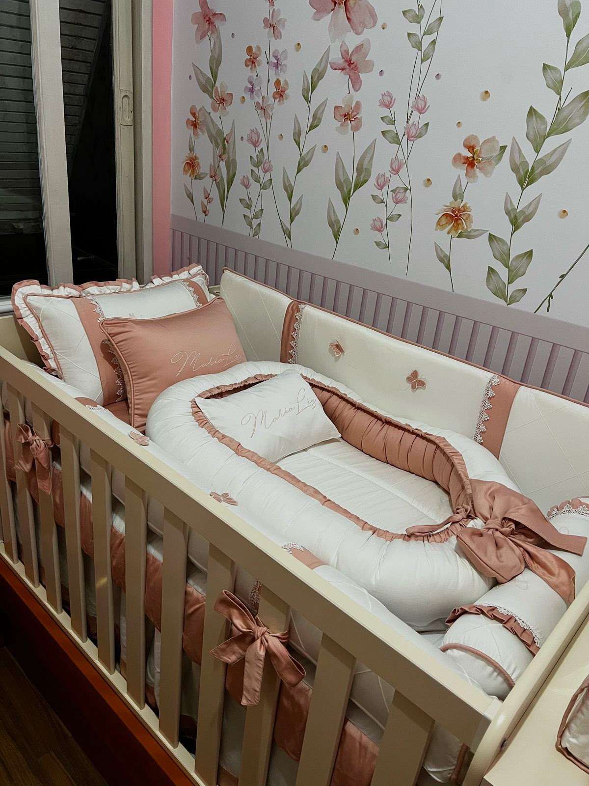 Kit Berço feito com tecido percal 400 fios e tricoline, de algodão antialérgico. Os enchimentos são feitos com manta siliconada para os protetores, ou espuma com densidade 23, proporcionando conforto e segurança ao bebê dentro do berço!