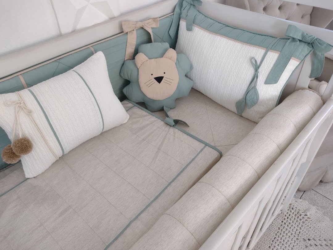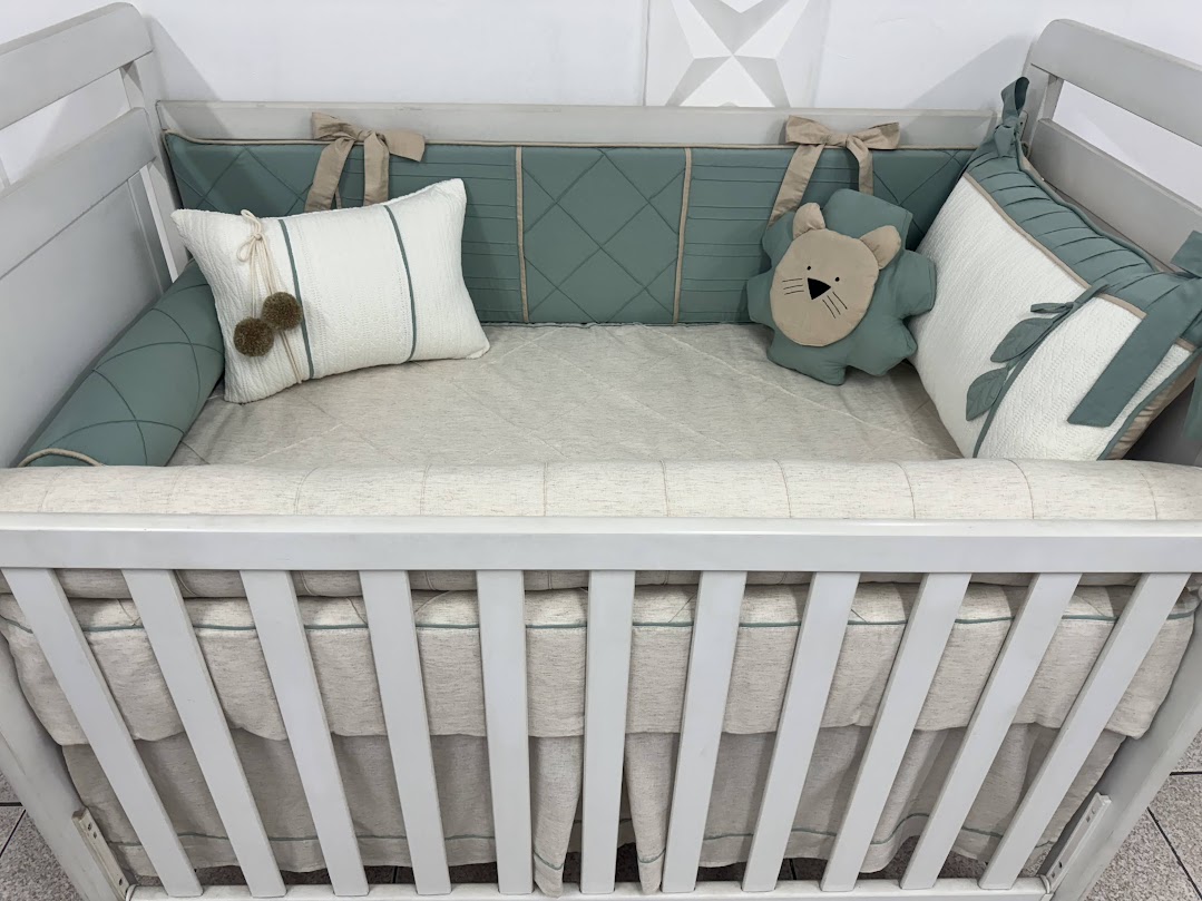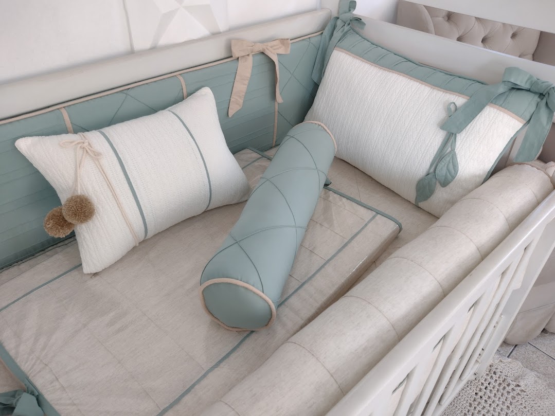 Kit Berço feito com tecido Percal e Tricô 100% algodão, e antialérgico com longa duração de uso. Os enchimentos são feitos com fibra siliconada para os protetores, ou espuma com densidade 23, proporcionando conforto e segurança ao bebê dentro do berço!