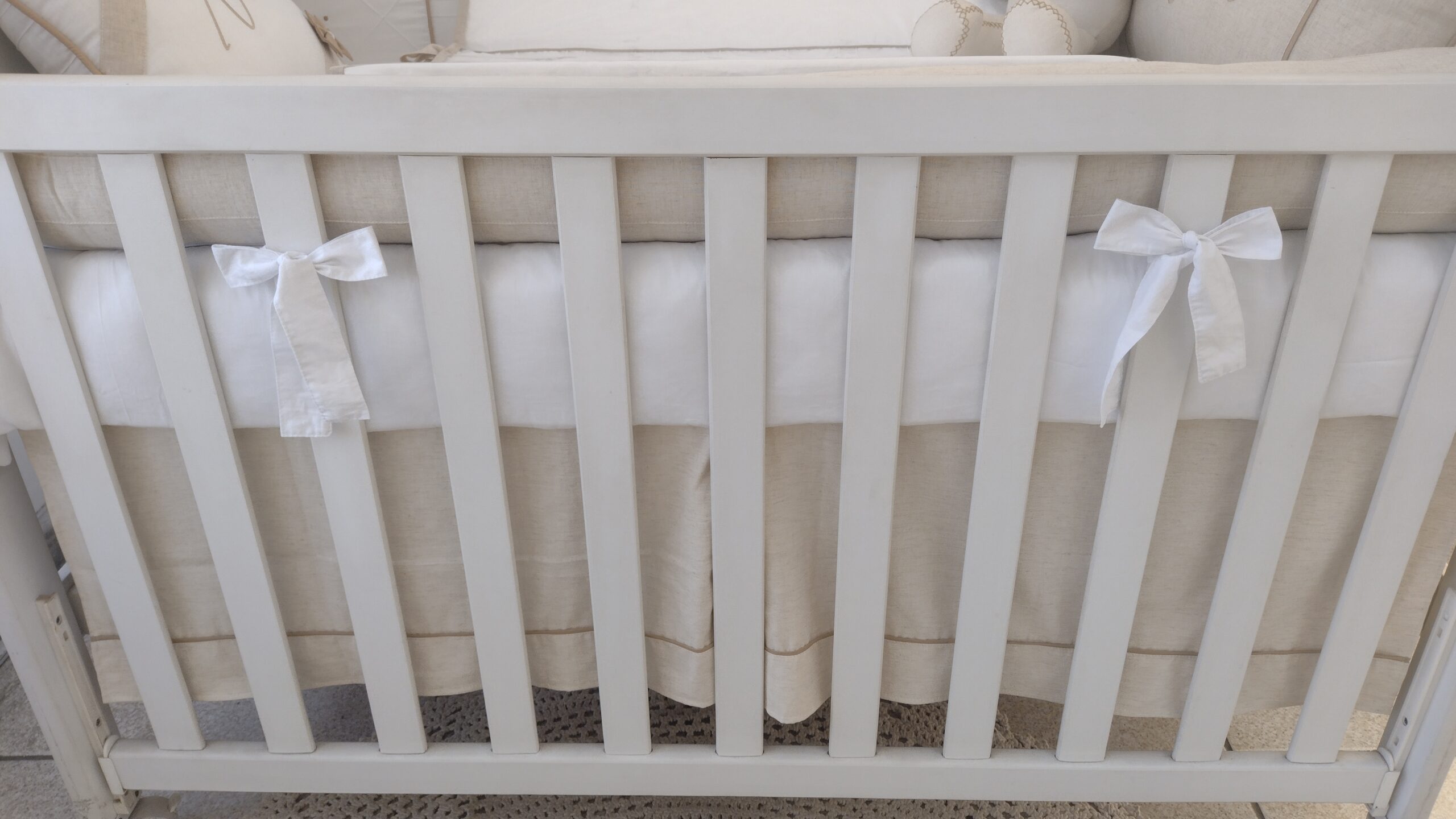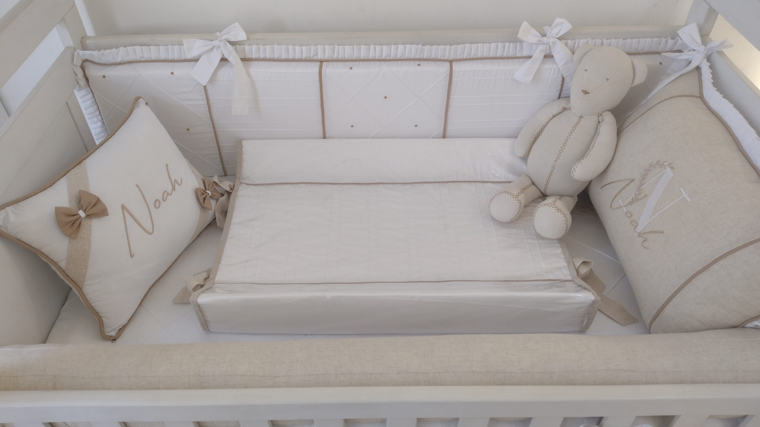 Kit Berço feito com tecido percal 400 fios 100% algodão, Sarja Leve antialérgico com longa duração de uso. Os enchimentos são feitos com manta siliconada para os protetores, ou espuma com densidade 23, proporcionando conforto e segurança ao bebê dentro do berço!