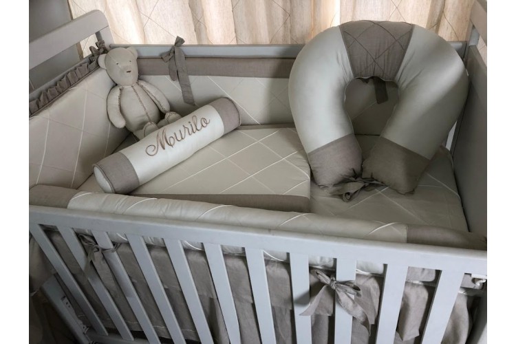 Feito com tecido Percal 400 fios antialérgico, neste kit os Encostos, Almofadas e Rolos seguem todos cheios e prontos para o uso.
