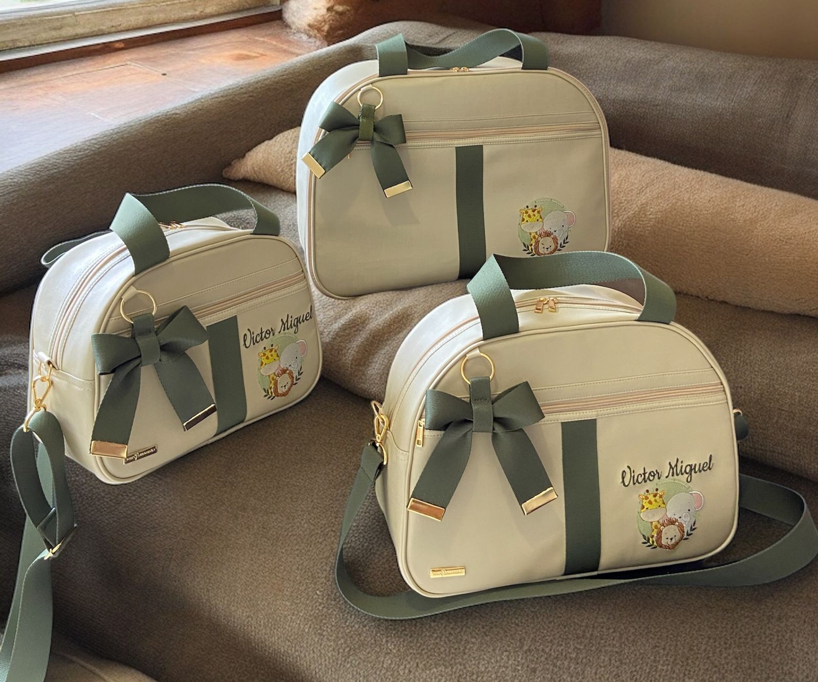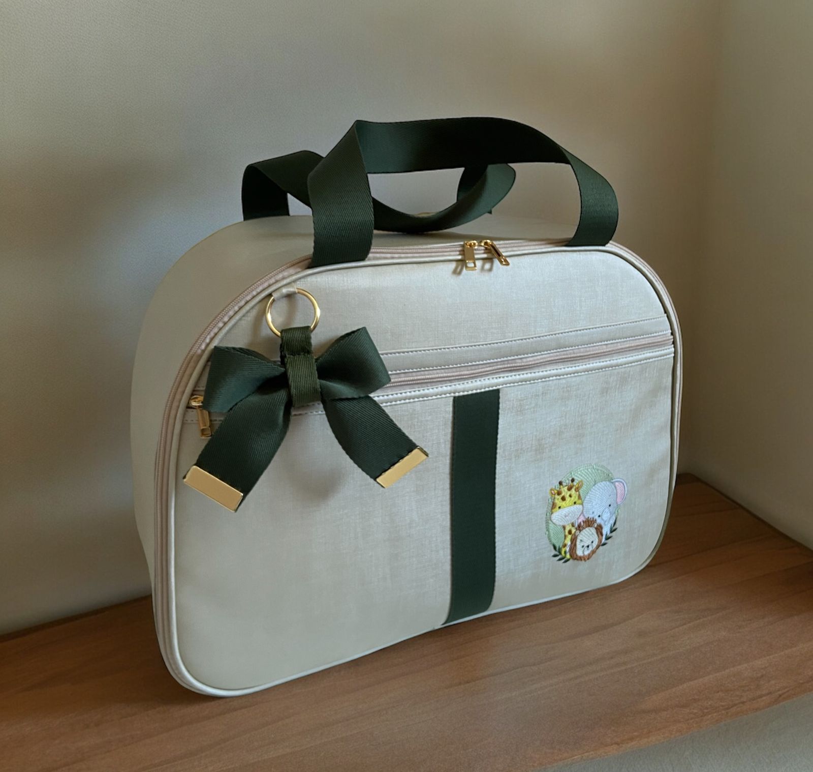 Mala Maternidade personalizada prática que cabe todos os itens necessários para a saída com o bebê como: fraldas, lenço umedecido, pomada, roupinhas, fraldinhas de boca, mantinha e demais itens de higiene pessoal.