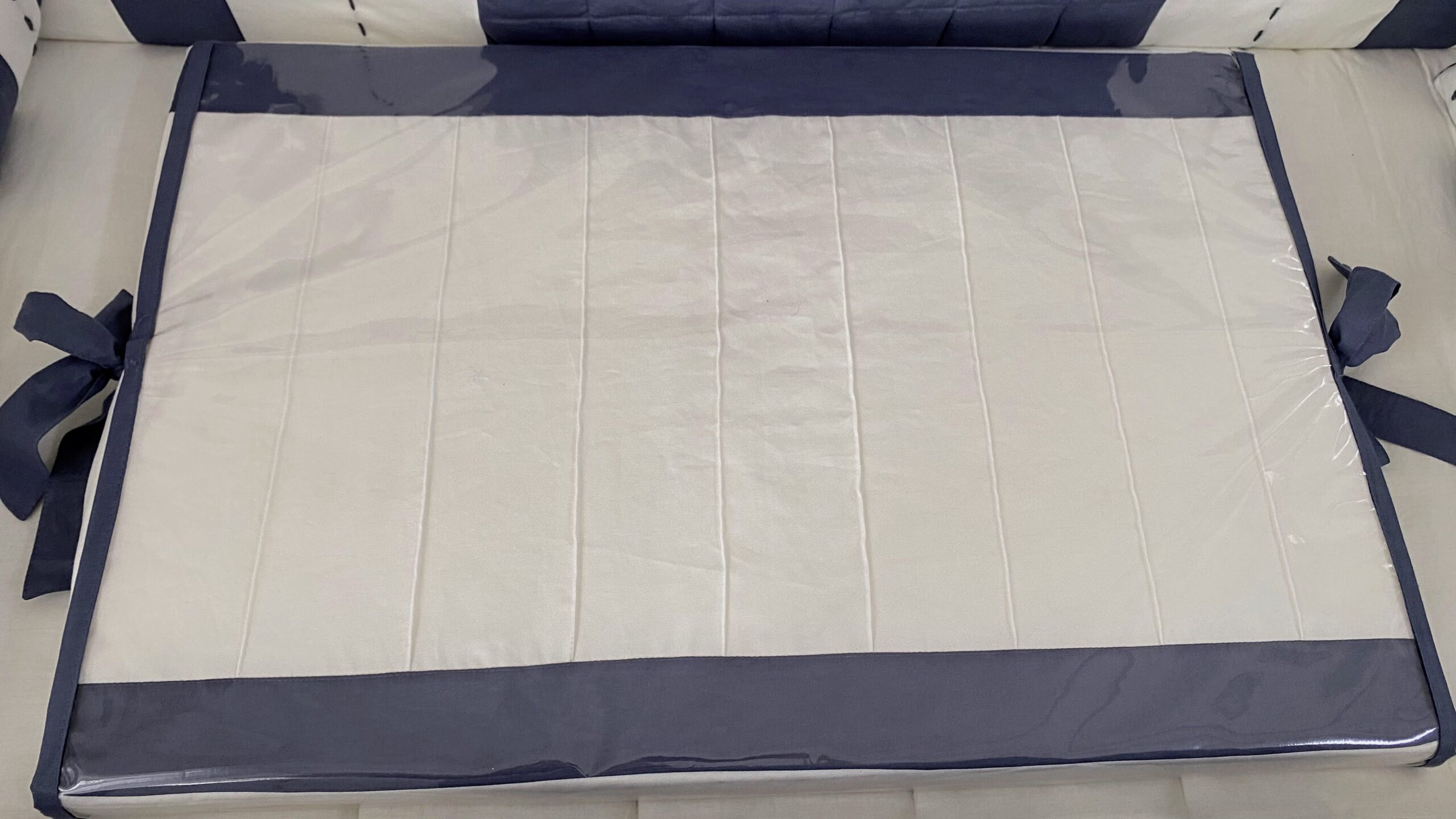 Trocador nas cores desejadas pelo cliente, Com lâmina de espuma de 50X70 cm, com espessura de 5 cm e envelopado com plástico destacável.